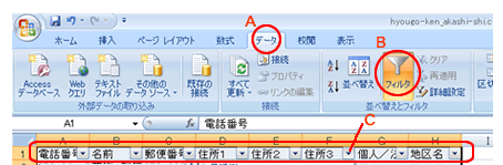 Excel2007での特定の地区の抽出